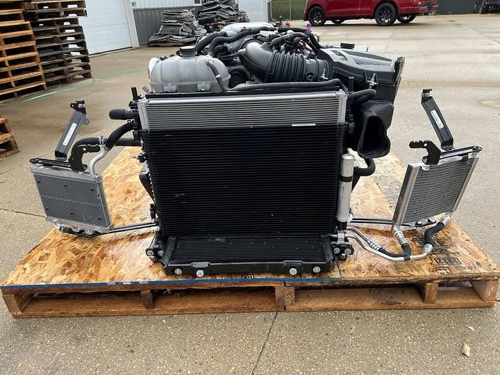The T500 Supercharged 5.2L Predator engine & automatic transmission comes with everything pictured, including the complete engine, supercharger, and transmission. This is a turn-key installation, ready to drop into your vehicle and start delivering power.